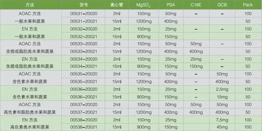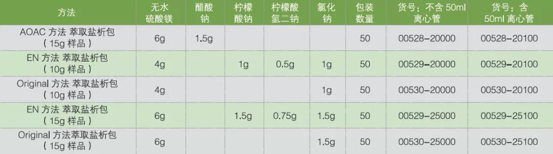 Welchrom? QuEChERS 部分產(chǎn)品訂貨信息如下: