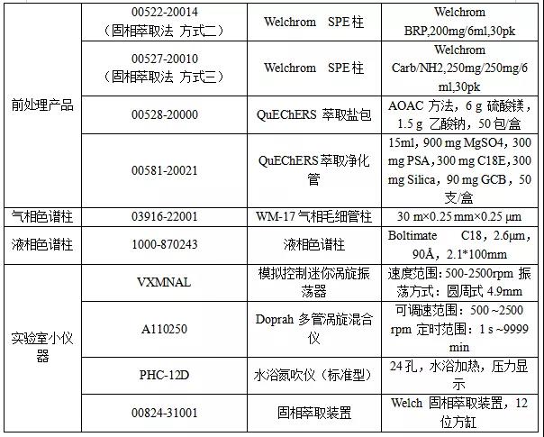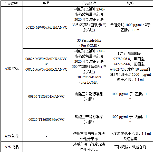 針對近日公示的2341 農藥殘留量測定第五法 藥材及飲片(植物類(lèi))中禁用農藥多殘留的檢測方法,月旭科技提供成套的檢測耗材包,并特別推出氣質(zhì)質(zhì)和液質(zhì)質(zhì)方法測定中的混標產(chǎn)品以及適用的前處理小柱。